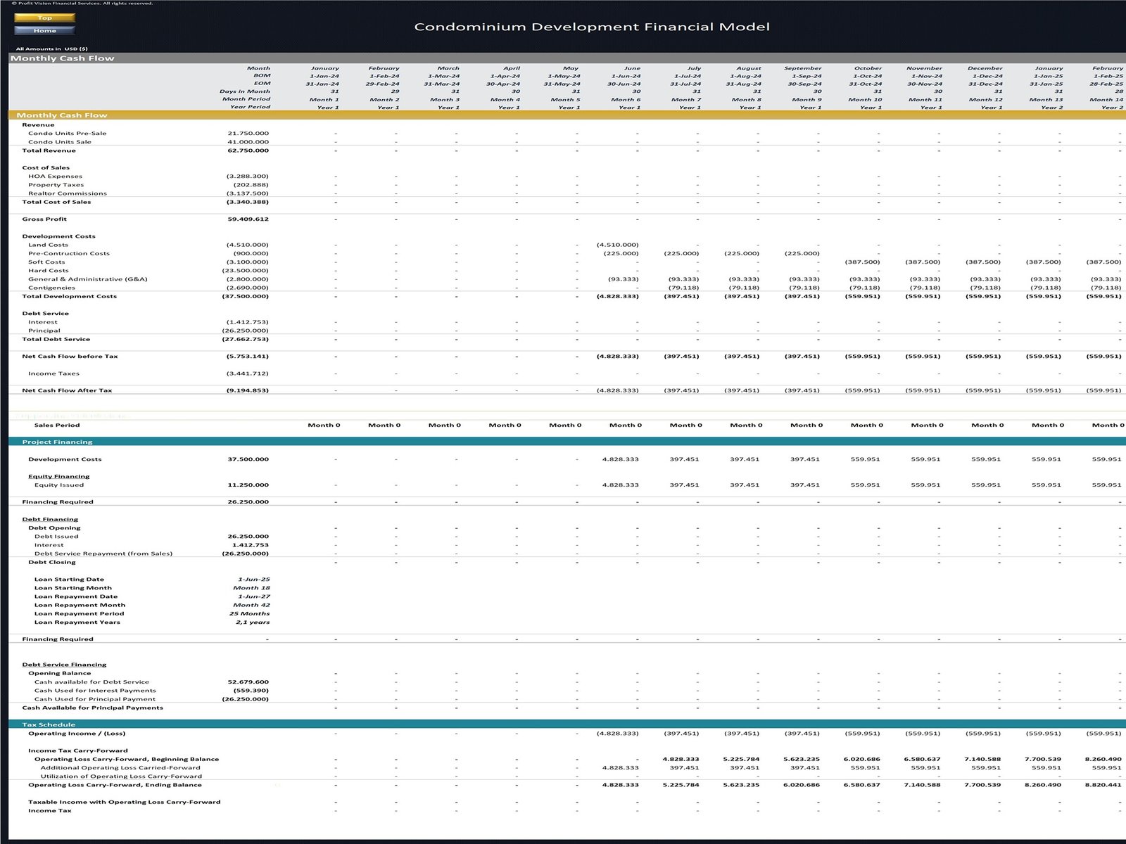 - Project Timing (Construction Time Frame, Units Pre-Sales, and Sales timing assumptions)