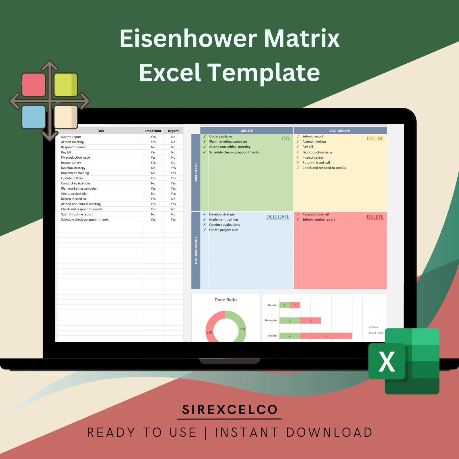 Eisenhower Matrix Task Management Excel Template | Organize & Prioritize | Task Priority Matrix, Decision Matrix, Productivity Planner File