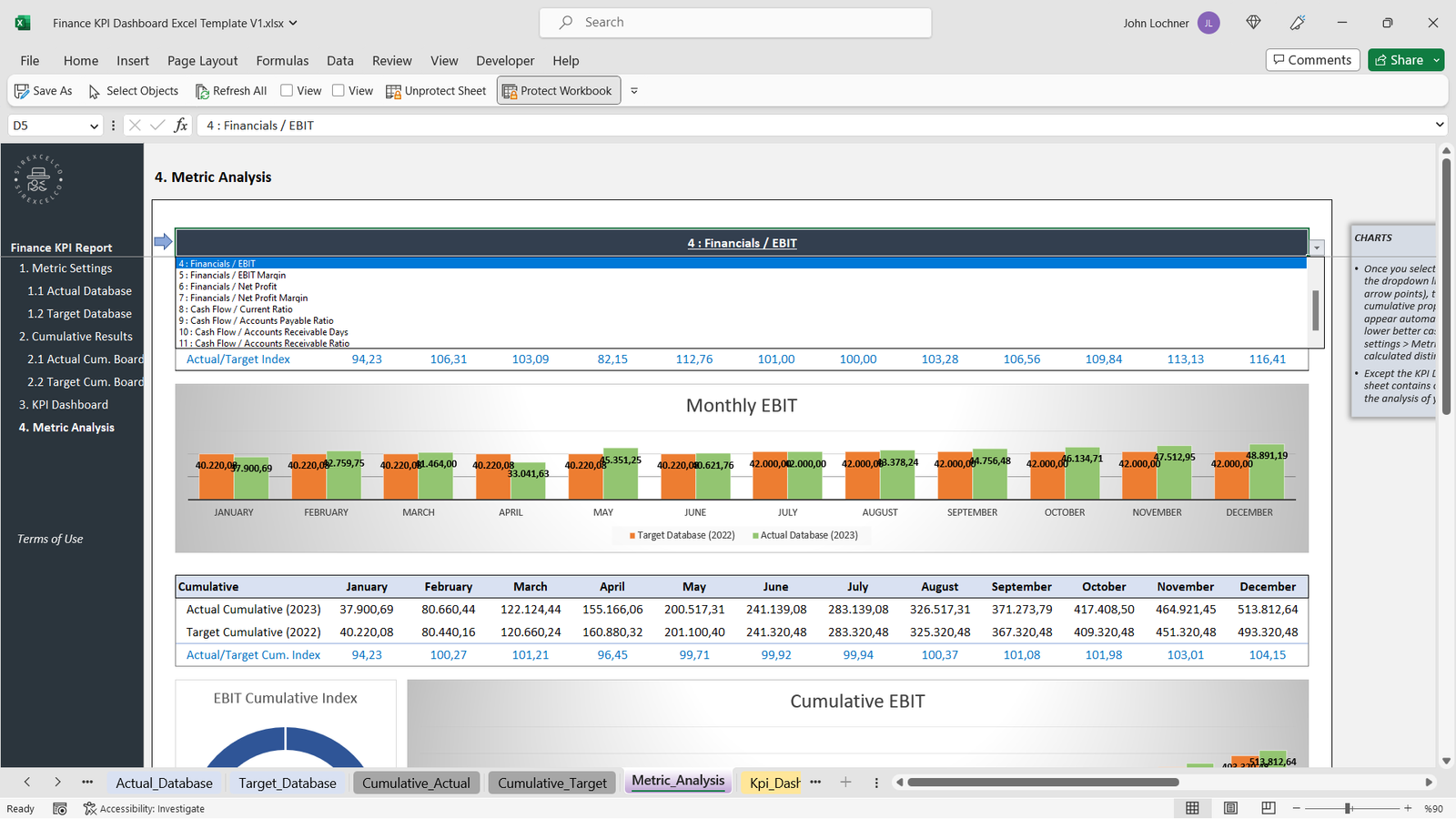 Finance KPI Dashboard Excel Template | Track & Analyze Financial Metrics | Monthly Cumulative Reports | Dynamic Charts | Easy to Use