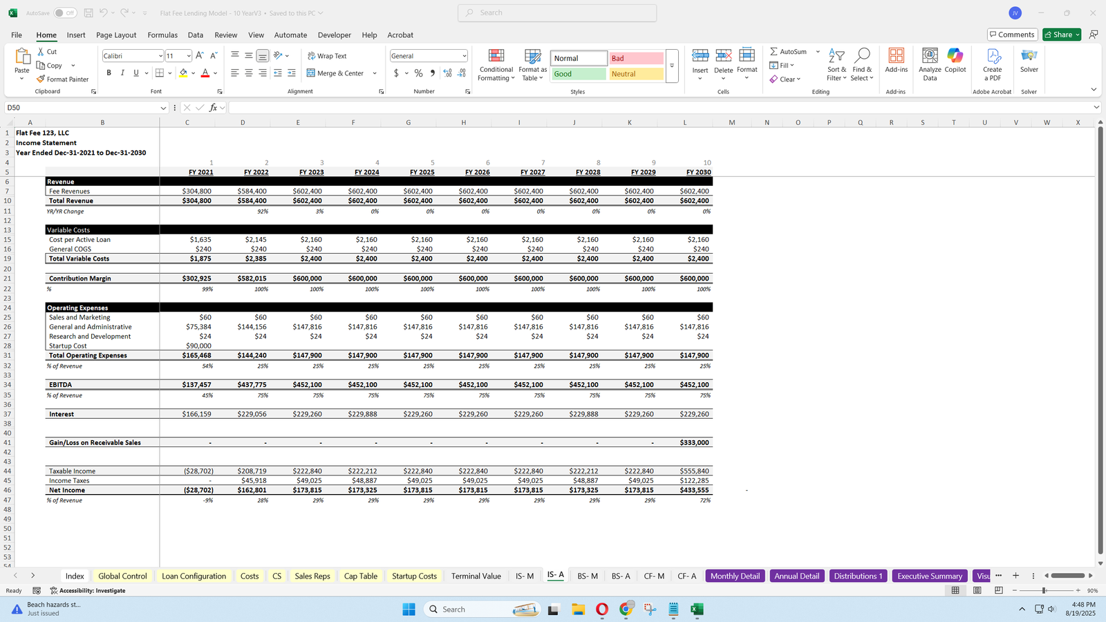 Flat Fee Lending Financial Model