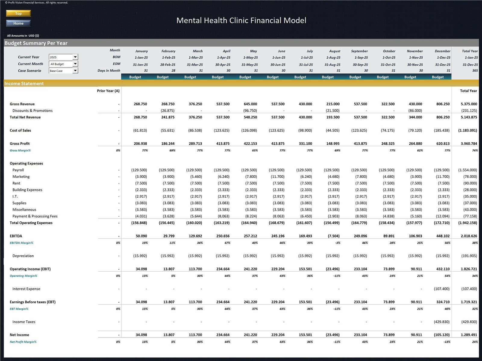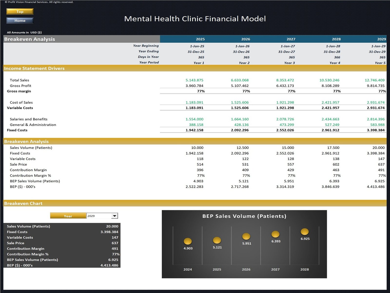 Mental Health Clinic – 5 Year Financial Model Description