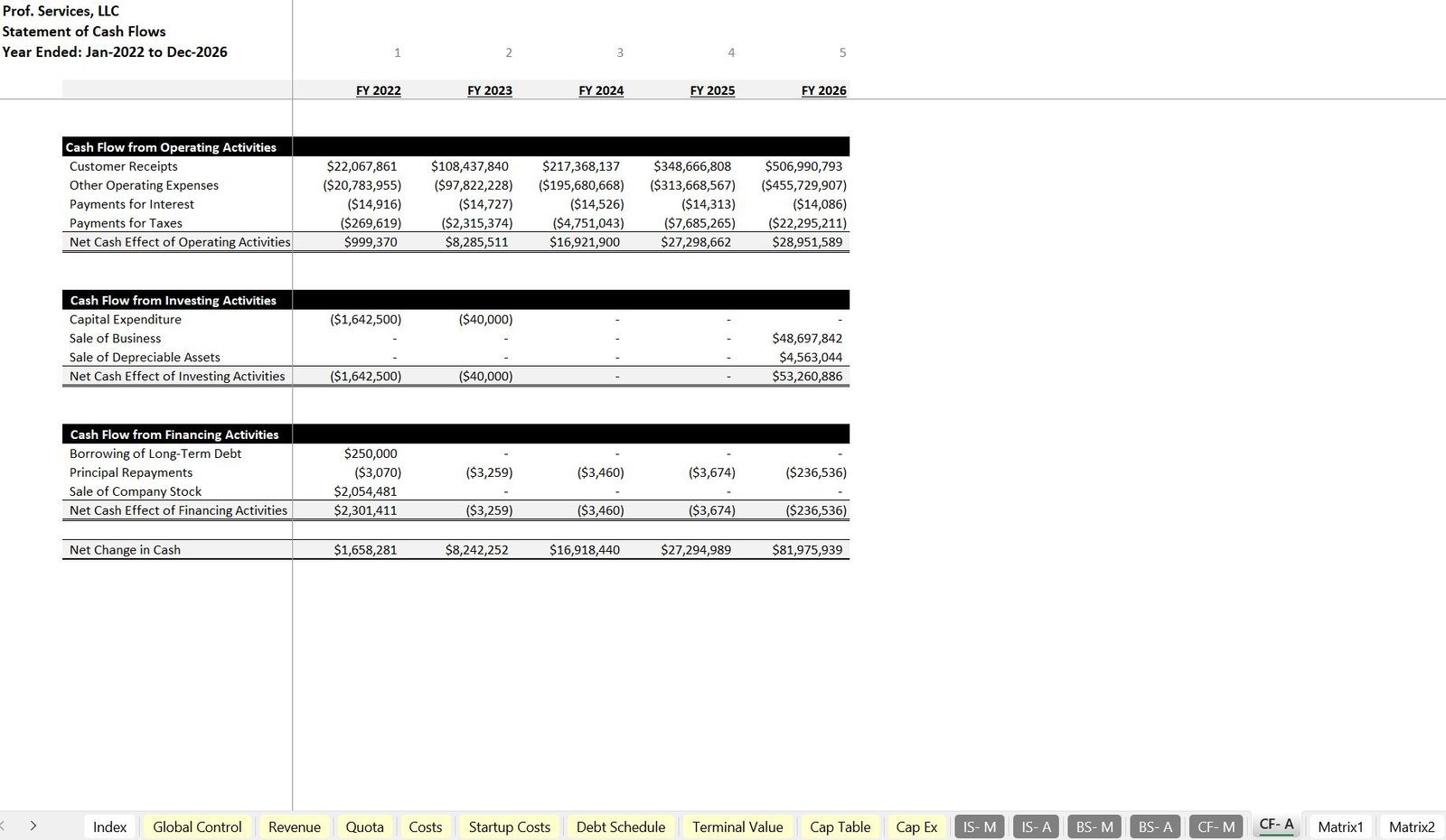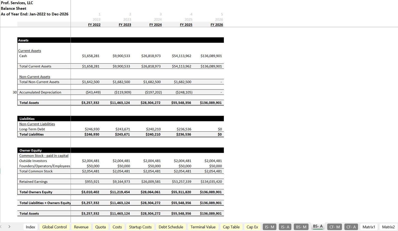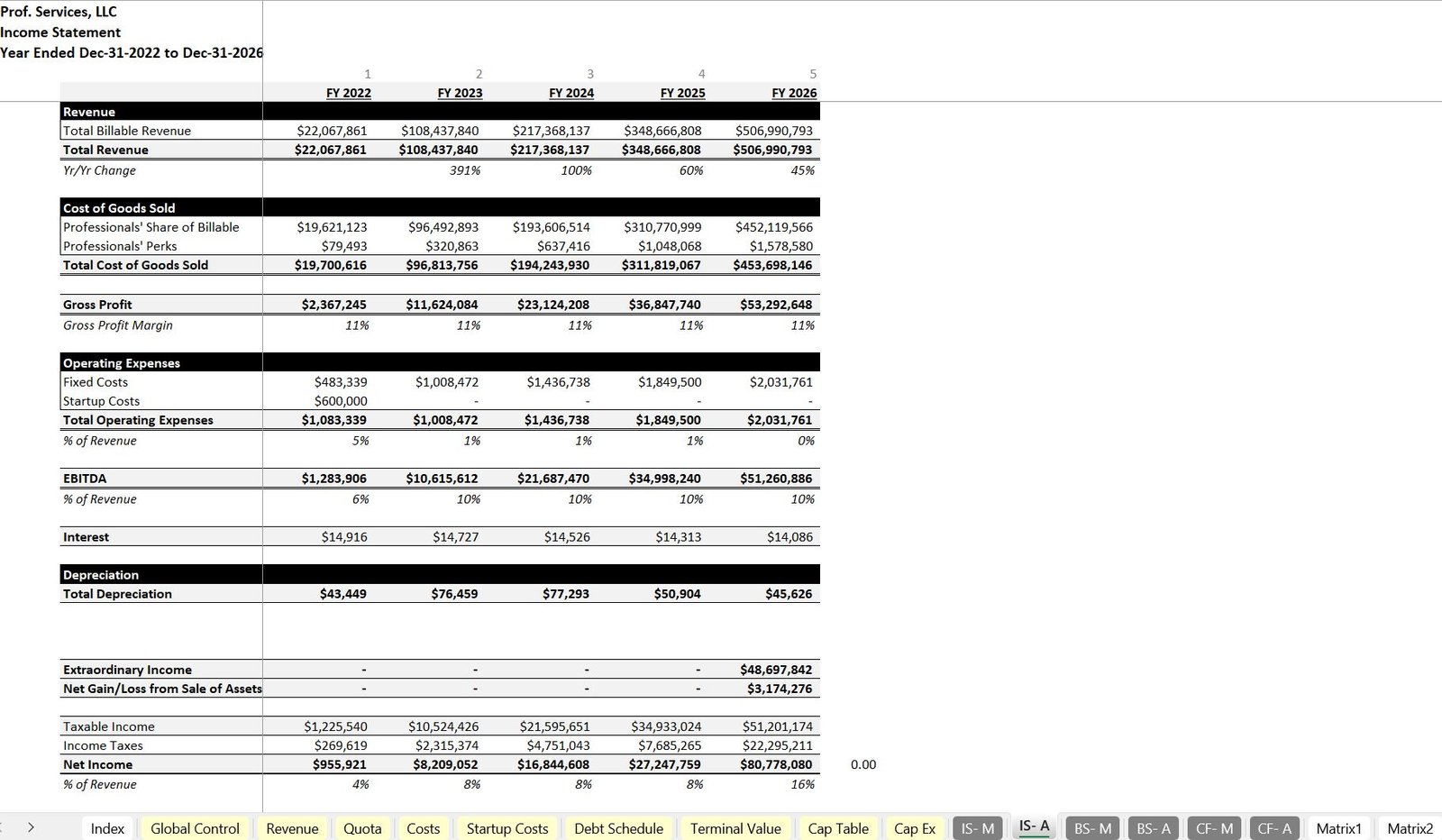 • With robust features, including detailed financial statements, projections, and advanced calculations, this model is ideal for agencies and professional firms such as law firms or CPA practices.