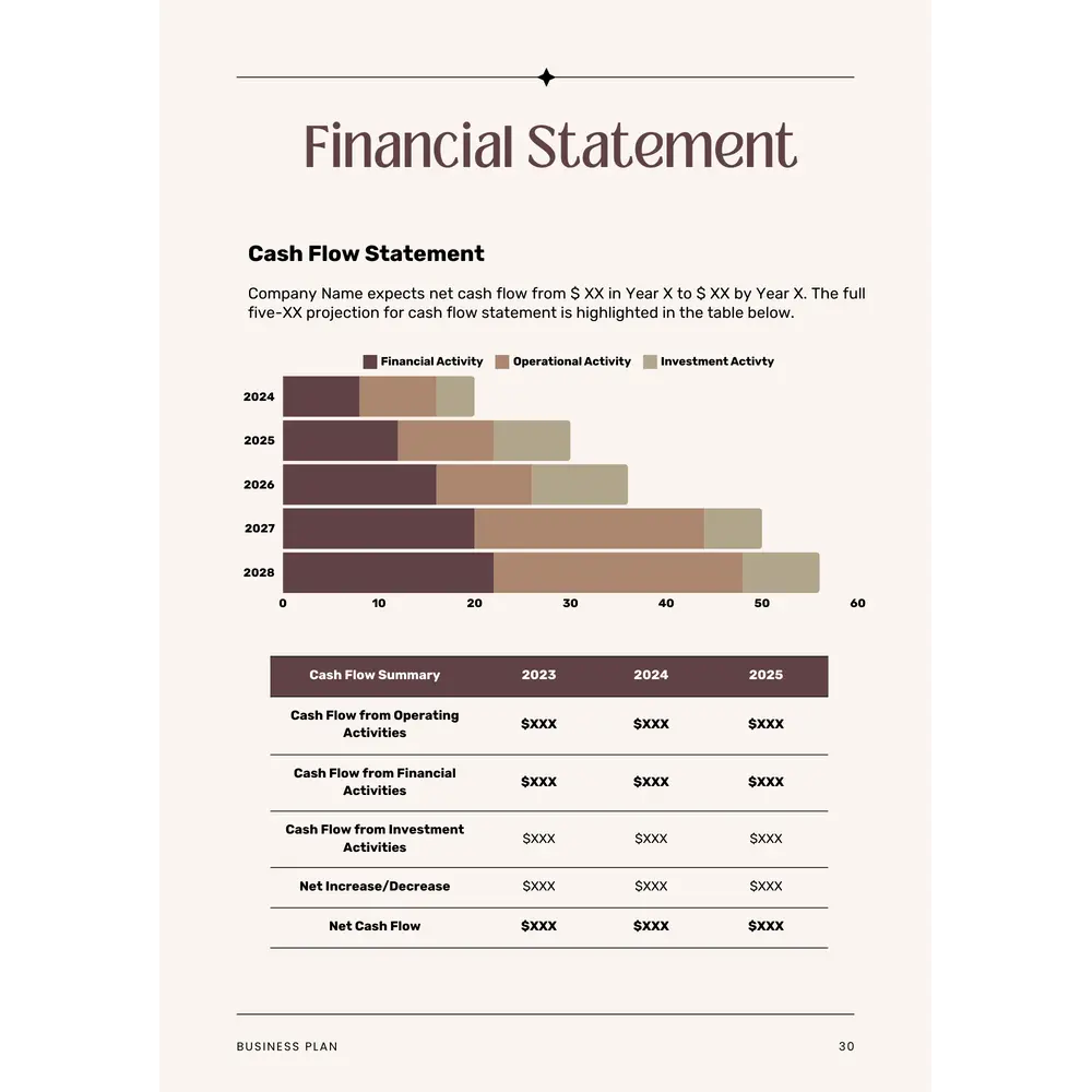 Access editable income statements, balance sheets, and cash flow statements. The template also includes projections for gross margin, net profit, and overall financial health, enabling you to track progress and secure funding.
